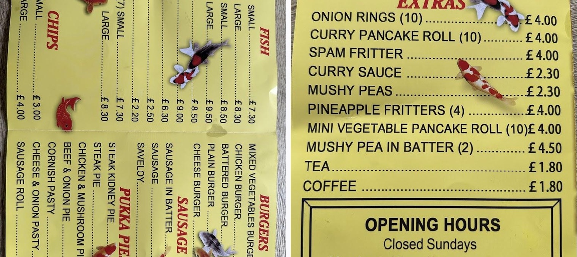If you’re in Jaywick or surrounding area then this is the best chip shop around. Ordered a fish and chips and was served what can only be described as a whale of a fish. Very flavoursome and beautiful golden batter. Good portion of chips. Was a struggle to finish. If the lunchtime special provides the same size fish then that would be exceptional value for money. A bit of a wait as everything is cooked fresh but definitely worth waiting for. (Photos of menu provided. Prices correct as of July 2024)